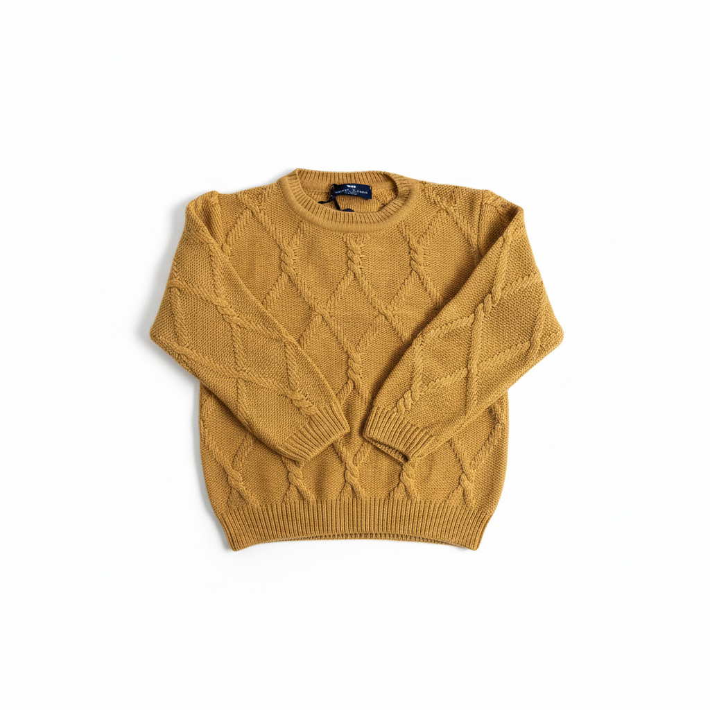 Acest pulover în nuanța muștar, semnat de brandul premium Manuel & Frank, este alegerea perfectă pentru un outfit modern și confortabil pentru cei mici. Realizat din bumbac moale și plăcut la atingere, oferă libertate de mișcare și un plus de stil în orice ținută, fie că este purtat la grădiniță, la plimbare sau la un eveniment special.