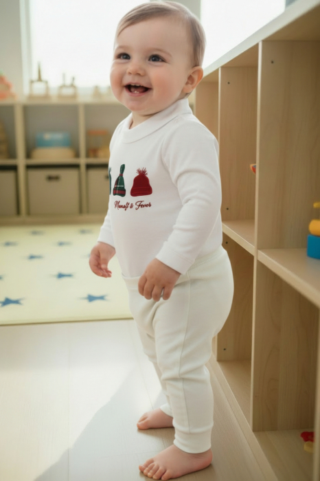 Acest body alb de la Manuell&Frank, creat pentru bebeluși de 6 luni, îmbină rafinamentul cu confortul absolut. Realizat dintr-un material moale și delicat, este ideal pentru pielea sensibilă a celor mici, iar modelul subtil adaugă o notă de eleganță perfectă pentru ținute speciale sau de zi.