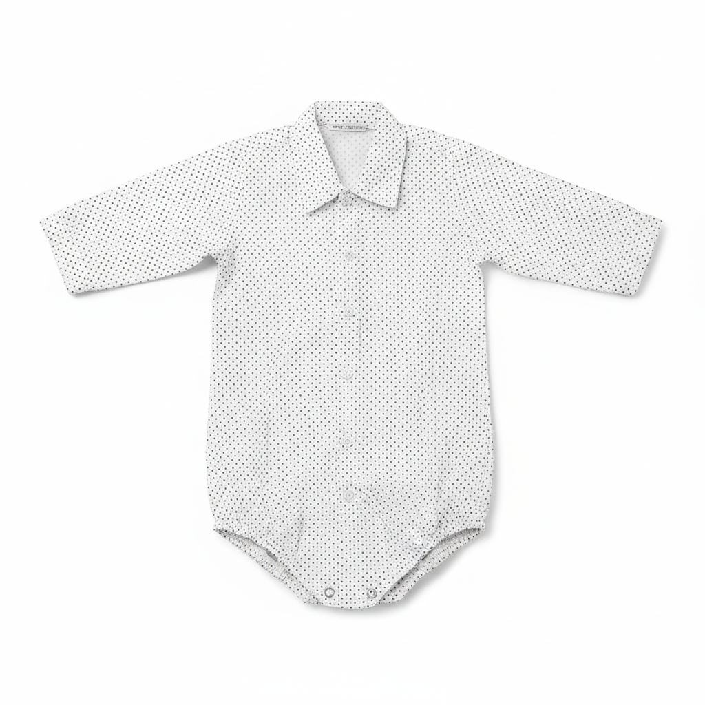Această cămașă albă cu buline, semnată de brandul premium Manuell & Frank, aduce un mix perfect între stil rafinat și un design jucăuș. Realizată din bumbac de calitate, este ideală pentru copii de 24 de luni, oferind confort pe tot parcursul zilei și un aspect impecabil la orice ocazie.
